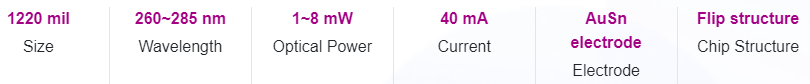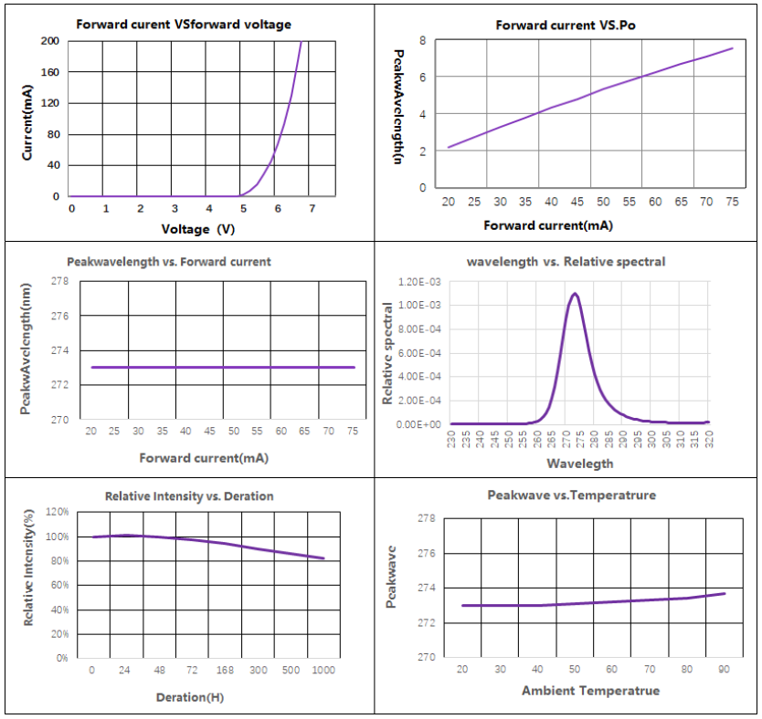 UVC photoelectric parameters and spec range (@ 40mA, Ta = 25 ℃, Rh = 30%)