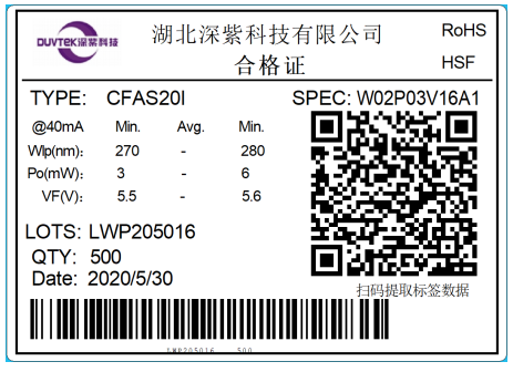 - It is forbidden to observe with naked eyes (including through microscope) and handle deep UV LED naked in operation;