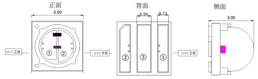 - As shown in the above figure, â‘ is the positive electrode of UVC, â‘¡ is the negative electrode of UVC; â‘¢ It is a heat dissipation pad;
