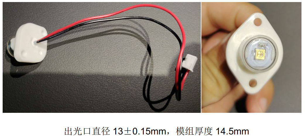• The bottom of the module is equipped with flange edge and two mounting holes, which is suitable for static UVC led bacteriostatic module for bacteriostasis of air and liquid; The recommended opening size is 16.7 ± 0.3 mm.